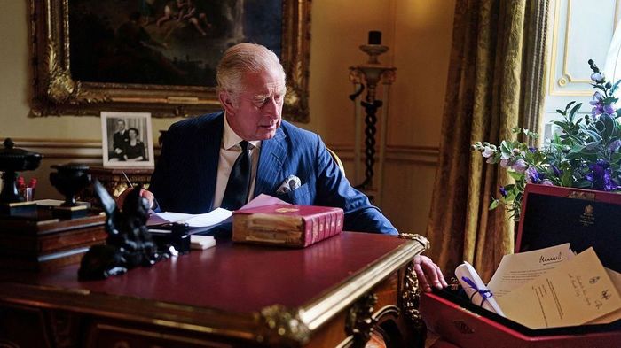 当地时间2022年9月23日,英国伦敦,国王查尔斯三世在伦敦白金汉宫执行政府公务。人民视觉 图