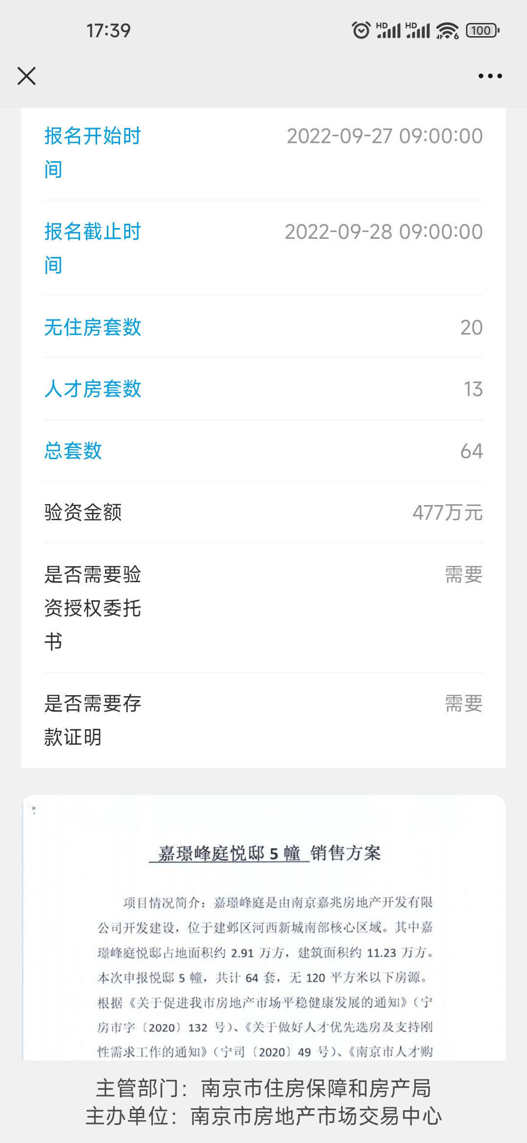 在南京新房报名统一平台“宁小通”上,位于河西南的嘉华嘉璟峰于9月26日领取了5号楼的预售证,房源数量为64套,户型面积有143平方米、211平方米两种。记者在预售证上看到,其销许均价为45118.8元/㎡,另外还配置了4000元/㎡的装修包,验资金额为477万。而在首付比例上,项目仍维持8成的高首付,这在目前的南京房地产市场上已是相当罕见了。