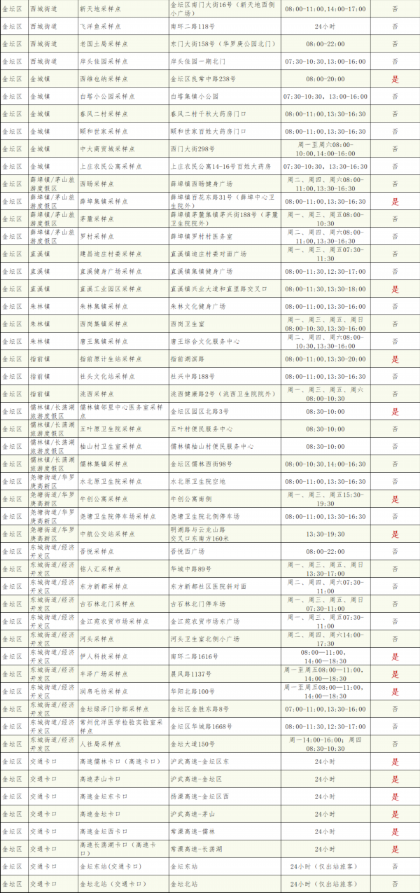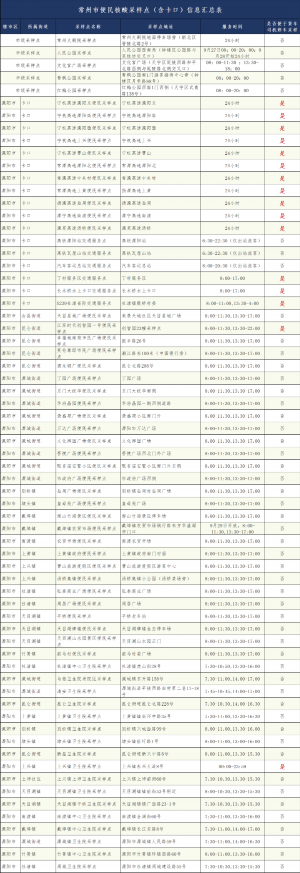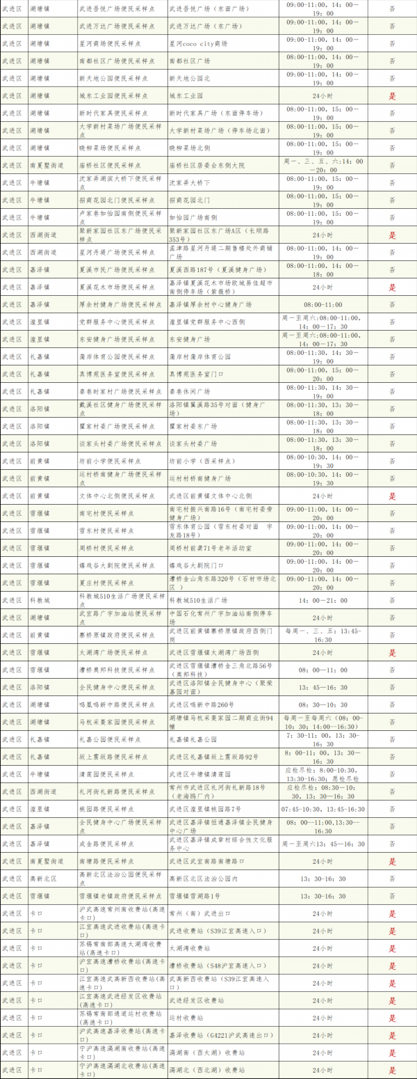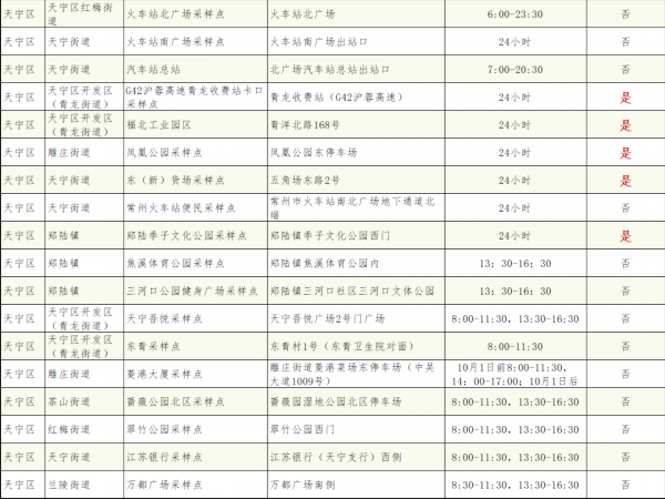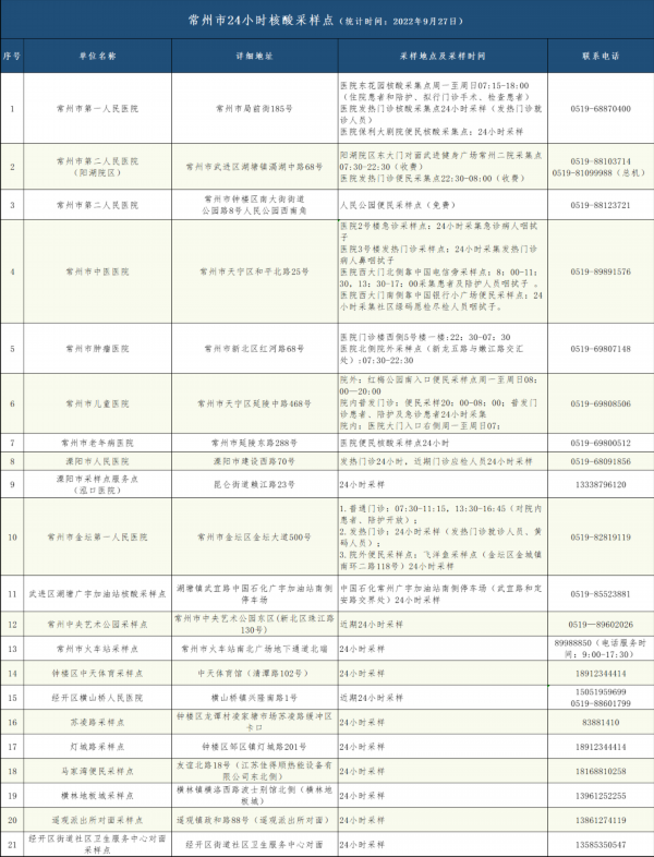 常州市24小时核酸采样服务点名单
