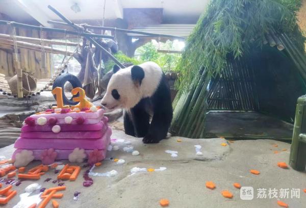 9月28日,常州淹城野生动物世界大熊猫馆里的“琪琪”迎来了落户常州的第六个生日,园区精心准备了一场氛围感十足的精致露营生日会,为它庆祝13周岁生日。