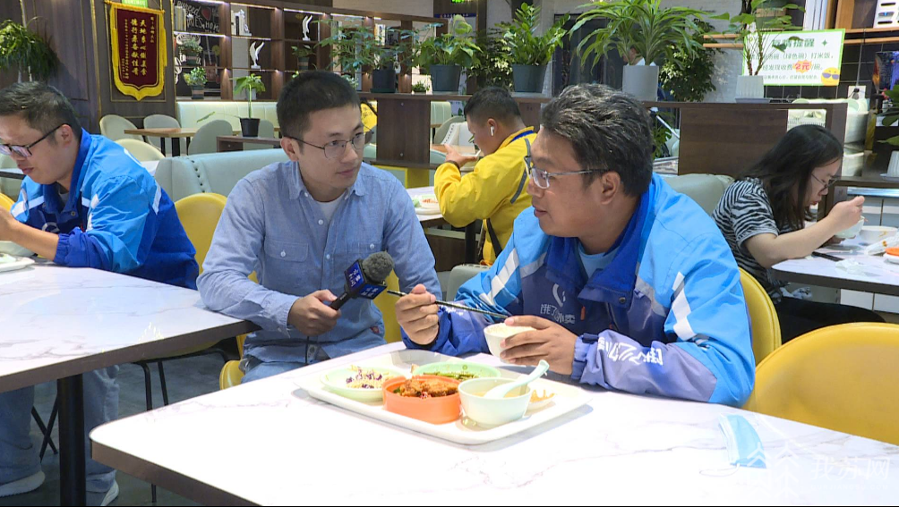 “因为我们这送餐嘛,时间还是比较忙的,只能这个点吃饭。他家的菜品还是不错的,味道蛮好的。之前来这边吃个饭,大概20块钱左右,现在给我们骑手办理了优惠,吃饭只要十块钱这样。”骑手卢旭说。