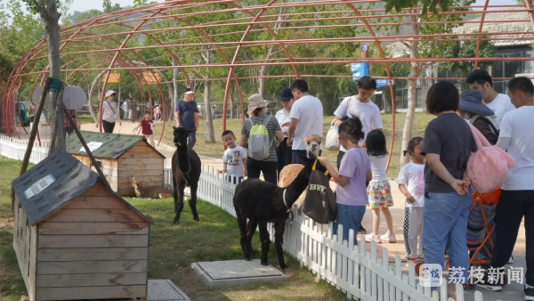 国庆节期间,不少市民选择带着小孩亲近大自然,增进亲子关系。在南京金牛湖野生动物王国,就有不少萌娃和家长来此与动物零距离互动。