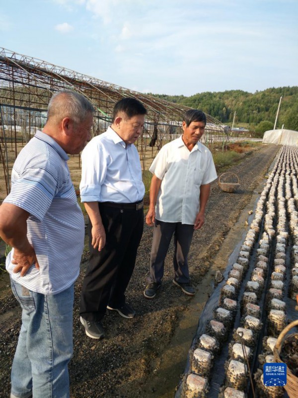 李玉在陕西省柞水县调研当地黑木耳生产和品种选育情况(资料照片)。 新华社发