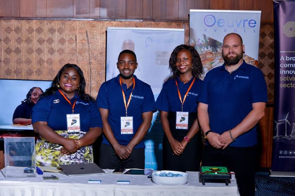 2022年7月,迪莉娅(左一)与创业团队在乌干达青年创业峰会上合影。受访者供图