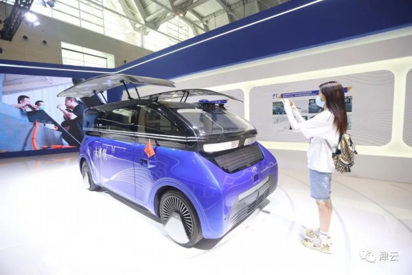 第六届世界智能大会上发布了“天津号”纯太阳能车,这是一款完全依靠纯太阳能驱动,不使用任何化石燃料和外部电源,真正实现零排放,引领前沿技术的智能网联汽车。