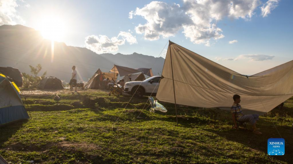 Tourists go camping in Nanchuan District of southwest China's Chongqing, Oct. 2, 2022. (Photo by Qu Mingbin/Xinhua)