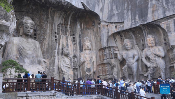 Tourists visit the Longmen Grottoes during the National Day holiday in Luoyang, central China's Henan Province, Oct. 3, 2022. (Photo by Jia Fangwen/Xinhua)