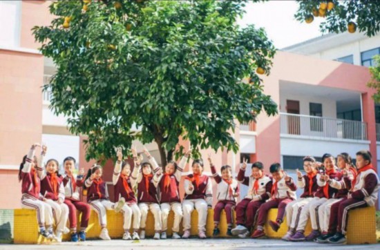 透过阳光的缝隙,看淡雅的五色梅,娇艳的长寿花,内敛的枫树,一草一木都被抹上明丽的色彩,伴随着孩子们快乐成长。