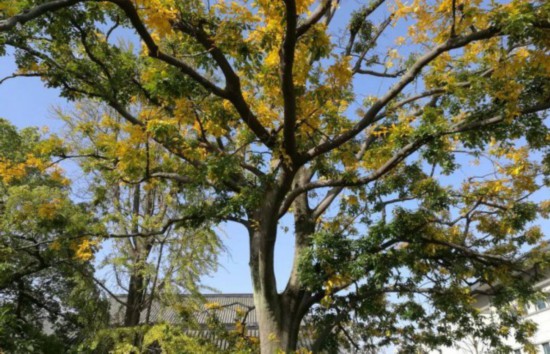 学校最南端的三棵百年银杏成了秋日校园的主角,捡一片黄叶,漾起无数张笑脸,捧满地的碎金,抛向湛蓝的天空。