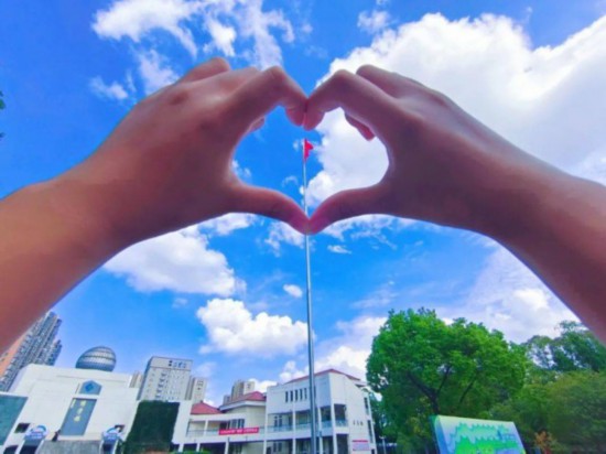 被秋雨洗过的天空清澈明朗,伴着微醺的暖阳和柔软的云朵,匆匆走过的学子,也忍不住多看了几眼。