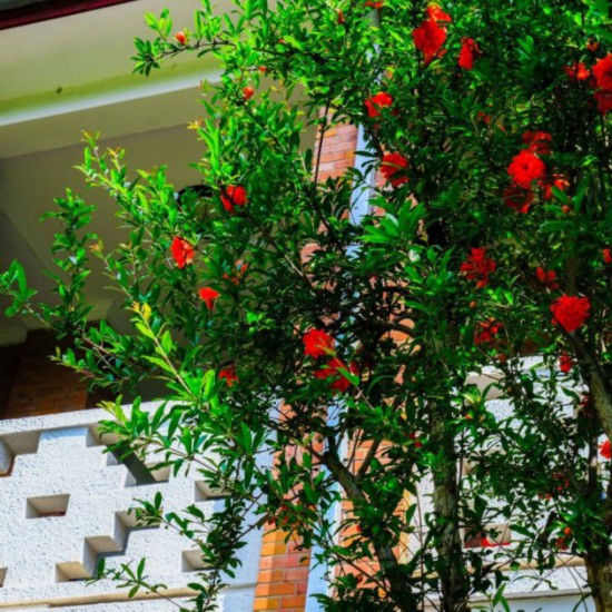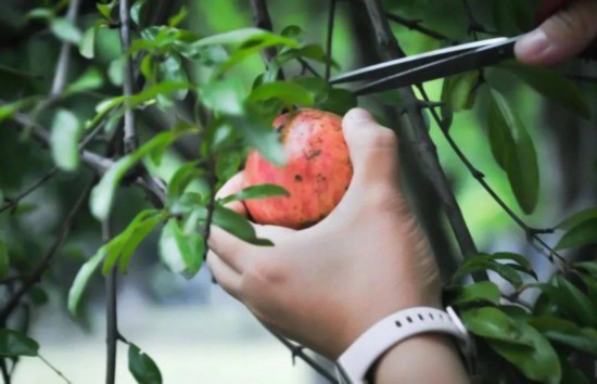 东红楼前的石榴树花开繁盛,枝丫不察间已被压弯了腰,从青涩到成熟,是时间的变迁,也是美好的沉淀。