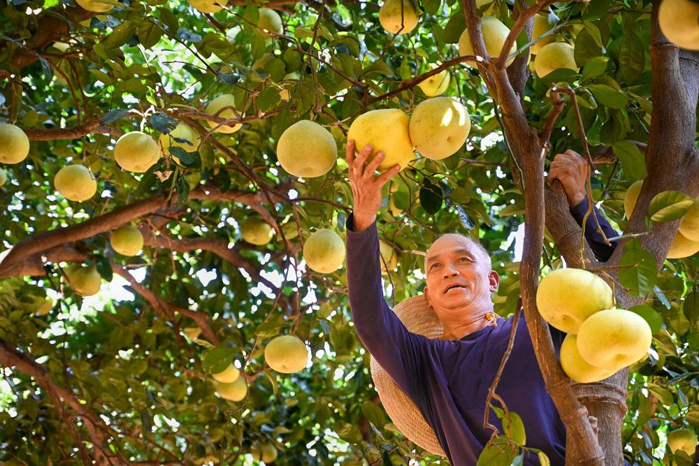 福建省莆田市仙游县的度尾文旦柚喜获丰收,当地农民在正在加紧采收。(郑金相 摄)
