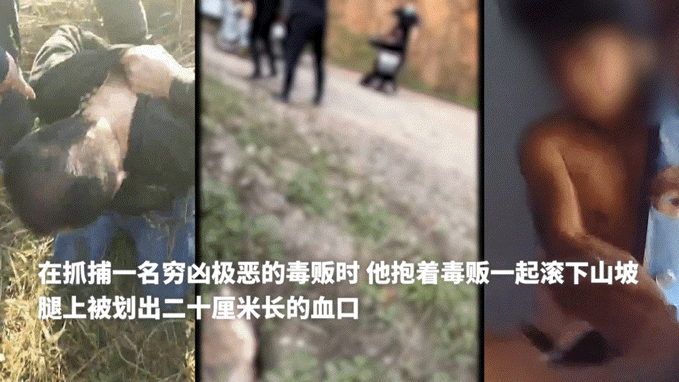 一把抱住毒贩,顺着陡坡滚下去