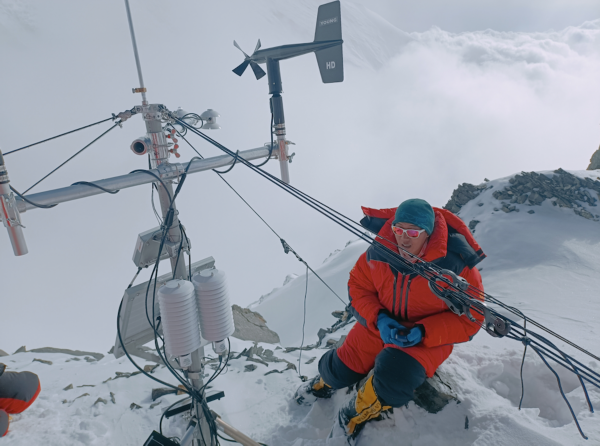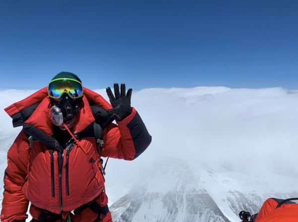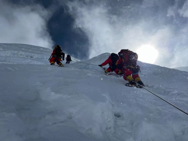 △德庆欧珠在珠峰峰顶比了一个“五”