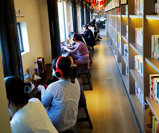 10月3日,淮安书房吴承恩故居店市民享受阅读时光