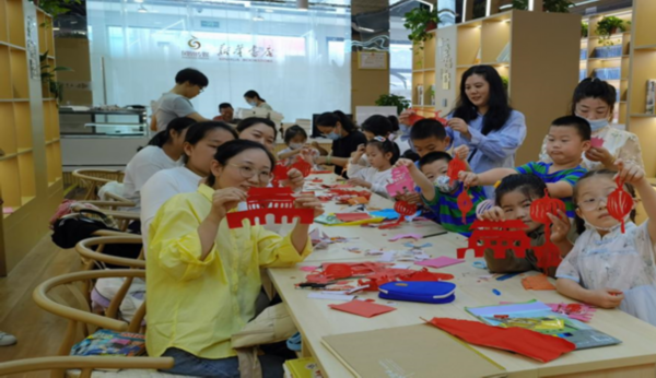 10月1日,淮安书房洪泽大庆路店举办非遗剪纸活动