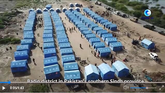 Floods in Pakistan have made countless people displaced overnight. Sindh province is one of the worst affected areas in the country, with more than 360,000 people now living in camps, and China-donated tents have provided shelters for them.