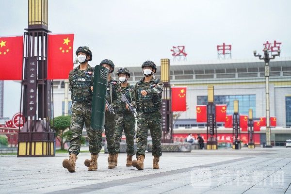 国庆节期间,为维护社会面安全稳定,武警陕西省总队汉中支队派出执勤官兵,在城区主干道、车站、商圈等重点位置和人员密集区担负执勤任务。