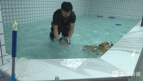 今天(10月7日)中午,记者在南京一家大型宠物店内看到,有不少市民带着自己的狗狗前来游泳,现场工作人员告诉记者,由于连续的阴雨天气,有的狗狗缺少运动,因此大家才会选择这种方式增加狗狗的运动量。