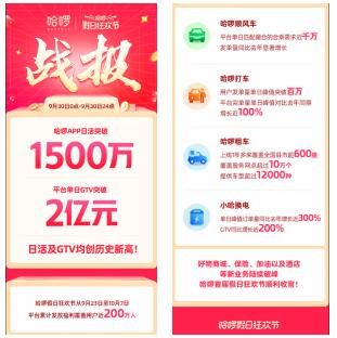10月9日,国内专业的本地出行及生活服务平台——哈啰宣布首届假日狂欢节以App日活突破1500万的不俗成绩落下帷幕。与此同时,包括共享两轮、顺风车、打车、电动车、小哈换电、租车以及加油等新老业务均在本次大促中交出满意的答卷。首届假日狂欢节的完美收官,标志着转型服务电商平台的哈啰首战告捷。该大促活动也成为哈啰跻身本地生活服务平台第一梯队的里程碑。