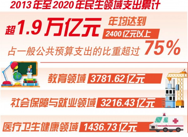 民之所盼,政之所向。党的十八大以来,我市持续加大对民生领域的投入力度。2013年至2020年,我市一般公共预算用于民生领域支出累计超过1.9万亿元,年均达到2400亿元以上,占一般公共预算支出的比重超过75%。