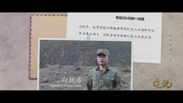 经中央军委批准,由中央广播电视总台、中央网信办和中央军委政治工作部联合出品的思想解读类融媒体特别节目《追光》,10月4日起在央视新闻频道20点档首播,央视国防军事频道重播。中央主要新闻网站、重点门户网站和“学习强国”“学习强军”平台等同步推出。
