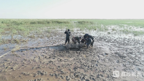 今天(10月10日)下午2点半钟左右,射阳县海涂公司保安人员报警称:在射阳港南侧的下老河七号滩的沼泽地里,有一头麋鹿被困那里,无法动弹,如果不能及时给予救援,有可能会导致该头麋鹿死亡。