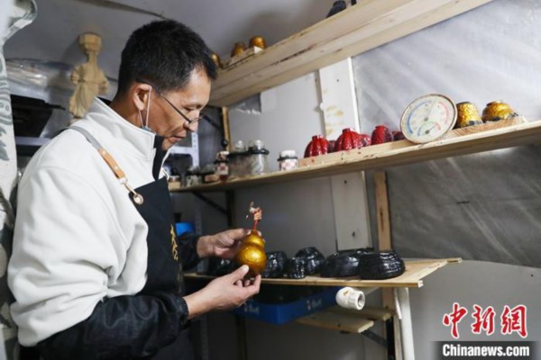 纹路细腻流畅,色泽富于变化,典雅而又精致的漆器在匠人指尖传递出古老技法的独特美感。10月11日,记者走进宁夏银川大漆技艺匠人谢立雄的工作室,雅香扑鼻,精美的大漆作品整齐陈列,葫芦、茶具、摆件、挂件等漆器工艺品琳琅满目。