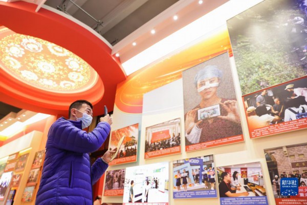 展览上,一张张图片生动诠释党的创新理论“飞入寻常百姓家”——
