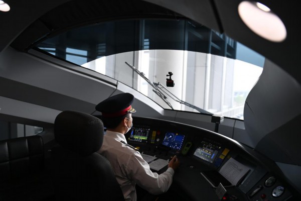 合杭高铁湖州至杭州段列车司机等待发车。新华社记者 黄宗治 摄