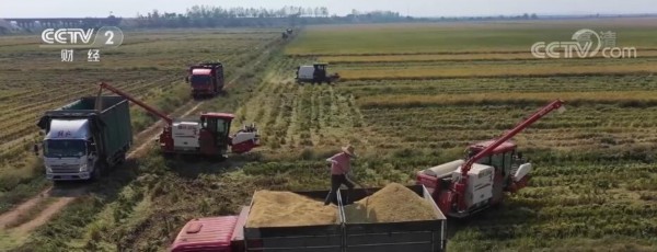 央视网消息:随着全国秋粮收获进入高峰期,江西九江共青城市的6.8万亩中稻也在全面加快收割,秋粮收购陆续开秤,应收尽收,确保颗粒归仓。