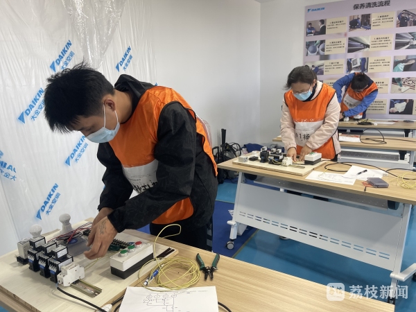 空调电路比赛,选手需要在指定时间内,完成图纸上的线路连接任务,并且能够实现供电和保护等功能。裁判孙卫东说:“所有的零件给你、让你进行组装,这里面是要有一定的技术,理论技术和一些实际上的操作技术,线路连接,包括后期的线路排放是否整齐,包括后期的安全都要考虑。”参赛人员张卜文认为:“平时我们都是注重实操,理论知识多少会有点缺陷,通过这个比赛我们也可以学习一点理论知识,来弥补我们在实操中的一些失误、犯的错误,我们可以在比赛当中向其他选手,学习一点经验、学习一些其他的技巧。”