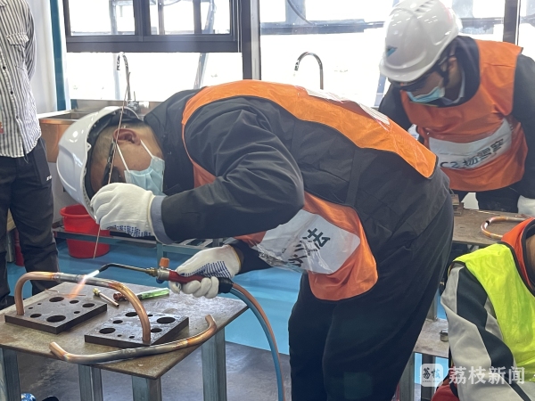 总决赛包括制冷与中央空调、家装设计、互联网营销三方面比赛内容。今天上午,首先进行的是制冷与中央空调比赛,比赛分为笔试和实操两个环节,实操比赛现场,选手们首先需要在30分钟内完成弯管、焊接等任务,重点考核钳工、焊接等能力,这套流程看似简单,但在操作时要做到分毫不差。与往年不同的是,今年新增了空调电路和安全绳的比赛项目。