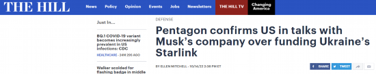 “独家:马斯克的Space X公司称其无法再支付在乌克兰的关键卫星服务费用,要求五角大楼买单。”美国有线电视新闻网(CNN)13日以此为题发表独家报道称,虽然“星链”卫星终端在乌克兰与俄罗斯的冲突中发挥重要作用,但这一“慈善项目”可能即将结束,因为提供该服务的美国太空探索技术公司(SpaceX)上月警告五角大楼,除非美军方面每月投入资金,否则该公司可能会停止资助乌方使用“星链”项目的费用。