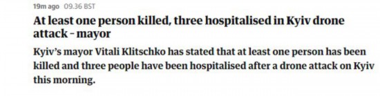 据英国《卫报》17日刚刚消息,乌克兰首都基辅市市长克利奇科表示,俄军17日对基辅实施的无人机袭击已造成至少1人死亡、3人受伤。