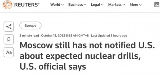 路透社声称,俄有关核演习给美国及其盟国带来另一个“挑战”,不过西方官员表示,西方有信心辨别俄罗斯的演习与任何有关使用核武器的实际行动之间的区别。