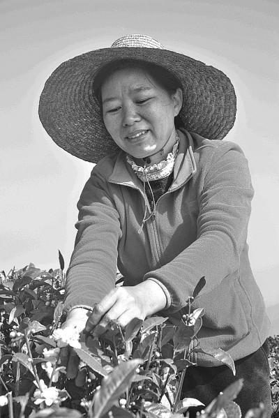 正在采茶的祝雪兰代表。光明图片