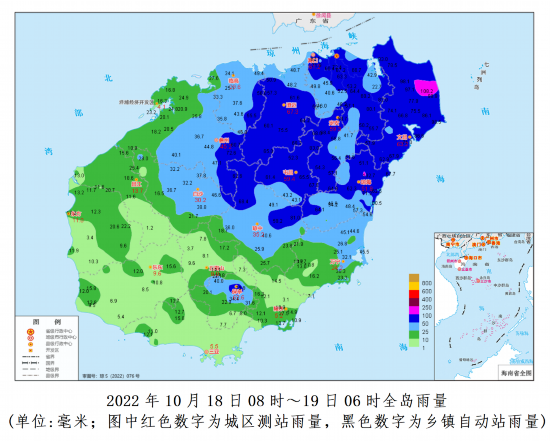 据统计,受“纳沙”和冷空气共同影响,18日08时—19日06时,海南岛北部、东部和中部地区普降暴雨、局地大暴雨,其余地区出现中雨、局地大到暴雨。琼海、文昌、海口等11个市县共81个乡镇(区)雨量超过50毫米,琼海和文昌两个市县共2个乡镇雨量超过100毫米,最大为琼海市塔洋镇132.7毫米。海南岛四周沿海陆地及近海普遍出现8~10级阵风,最大阵风出现在海南岛东部近海为11级(31.8米/秒)。