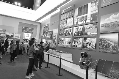 10月11日,北京展览馆,“奋进新时代”主题成就展中央综合展区,展出的福建省三明市医改图片吸引了众多观众驻足观看。光明网记者 季春红摄/光明图片