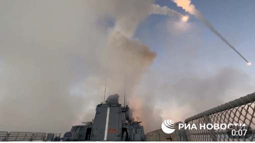 俄新社在报道中还一并配上了俄军为打击乌境内目标发射导弹的画面。