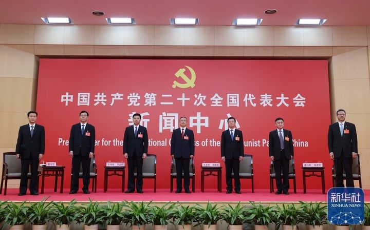 10月20日,中国共产党第二十次全国代表大会新闻中心举行集体采访。青海、宁夏、新疆、中央和国家机关、中央金融系统、中央企业系统(在京)代表团新闻发言人出席,介绍代表团学习讨论二十大报告情况,并回答记者提问。新华社记者 陈建力 摄