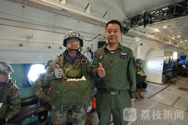 巾帼不让须眉,2名文职女教员凭借着过人的胆气、豪气与男兵同场竞技,完成此次空降任务。