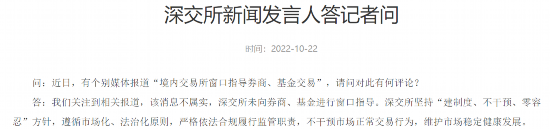 对于近日有媒体报道“境内交易所窗口指导券商、基金交易”,10月22日,上交所、深交所官网发布信息称,消息不属实。