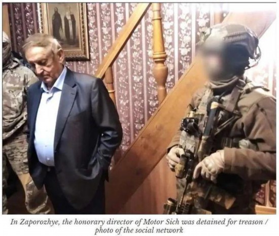 乌克兰执法人员于22日以叛国罪逮捕马达西奇公司总裁维亚切斯拉夫·博古斯拉耶夫。俄罗斯联邦新闻通讯社23日报道,乌克兰安全局指控他非法向俄提供军用航空发动机。