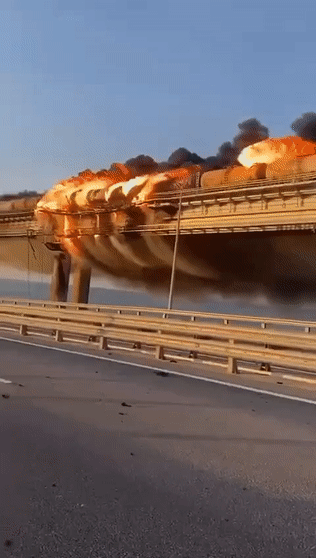 克里米亚大桥上发生爆炸,黑烟滚滚