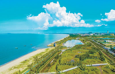 海南省海口市江东新区防潮堤与海岸带生态修复工程(起步区段)。