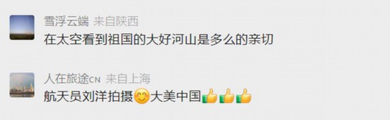 看到这些最新大片,小伙伴们是纷纷点赞。“在太湖找到了我家的位置”“真宇宙级大片,绝美!”“新壁纸已到货”“祖国的大好河山”“中国空间站yyds”“大美中国,壮哉!”