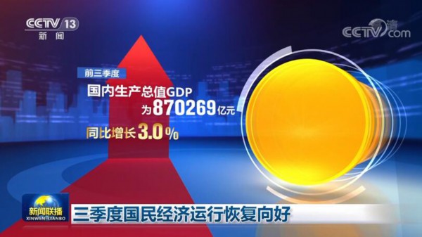 前三季度,国内生产总值GDP为870269亿元,同比增长3.0%,比上半年加快0.5个百分点,经济总体呈现恢复向好态势。其中,三季度当季,GDP同比增长3.9%,比二季度加快3.5个百分点。