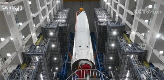 总台央视记者 吴天白:在我身后的就是本次负责发射梦天实验舱的长征五号B运载火箭。长征五号B运载火箭是我国新一代大型运载火箭中的一员,主要是为了满足我国空间站建设等大型低轨有效载荷的发射需求而研制。火箭研制攻关历时10余年,克服了四大关键技术,为中国空间站建造奠定了基础。