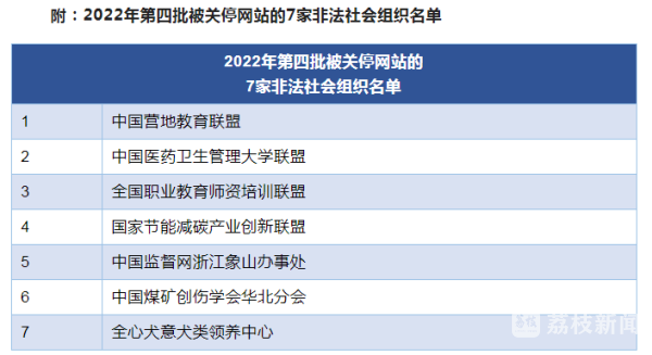 近日,民政部、中央网信办、工业和信息化部持续深入落实中央关于打击整治非法社会组织决策部署,精准发力,有效打击,依法关停了2022年第四批7家非法社会组织网站及相关新媒体账号,清除了有关关联网页。